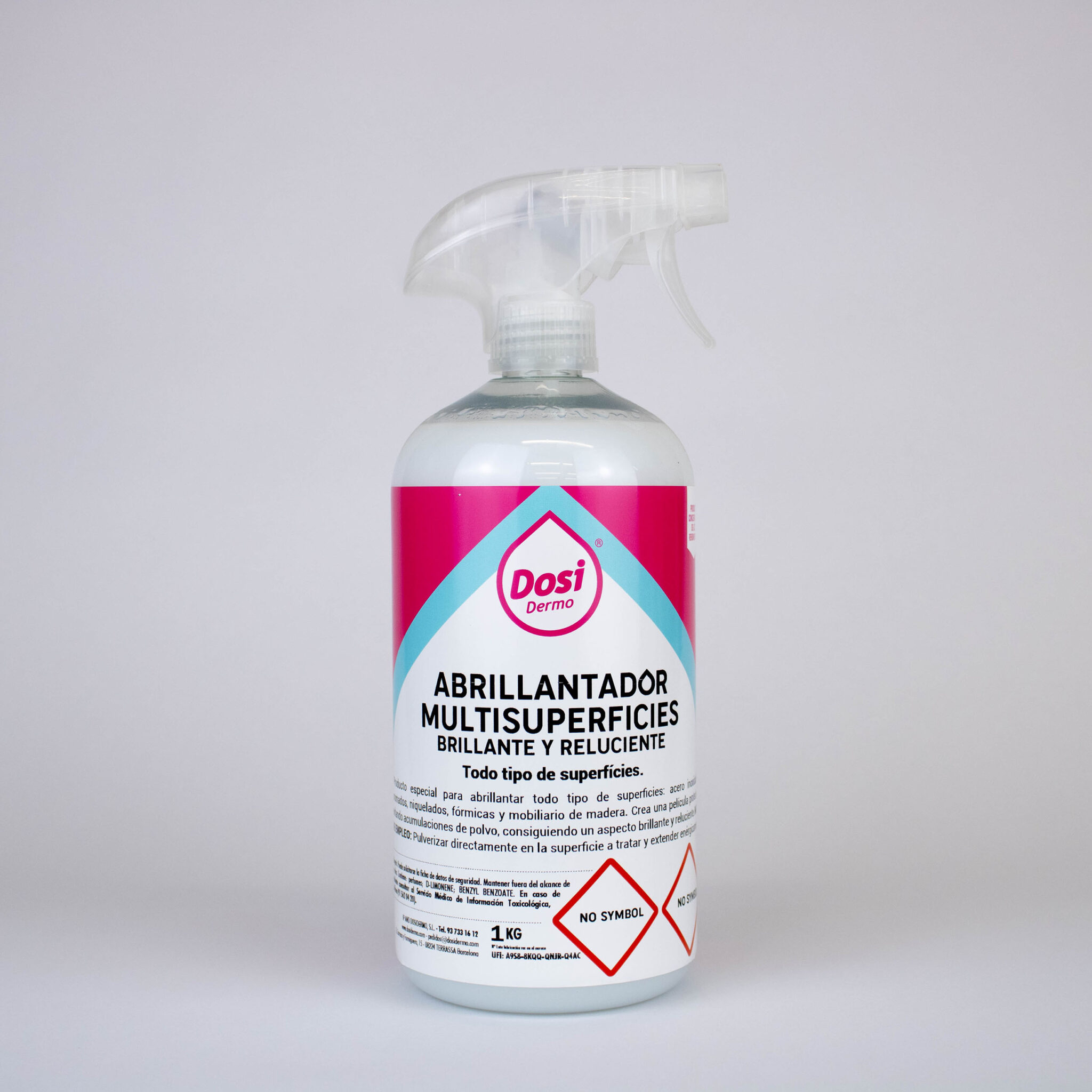 El abrillantador multisuperficies de DosiDermo es apto para usar sobre mobiliario de madera, cromados, niquelados, formicas y superficies de acero inoxidable. Su fórmula crea, tras la aplicación del producto, una película protectora evitando acumulaciones de polvo y consiguiendo un aspecto brillante y reluciente. Además de dejar un agradable perfume sobre la superficie tratada, al pasar nuevamente un paño seco por ésta el brillo se incrementa al máximo.